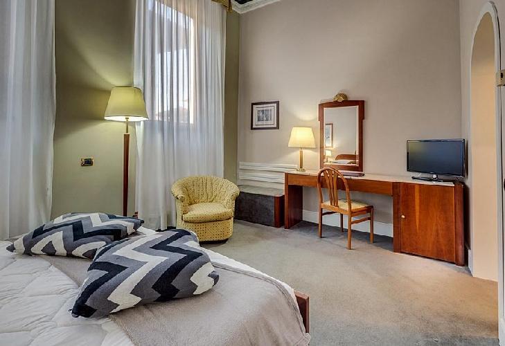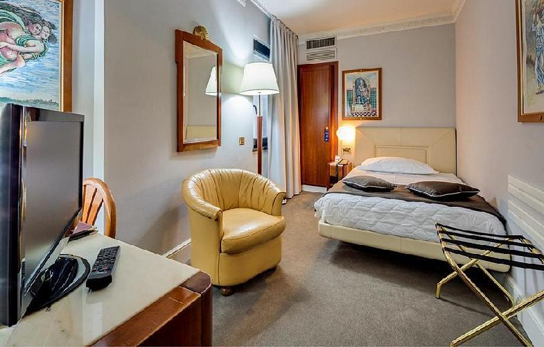 Hotel per viaggi di piacere e affari a Firenze. L' Hotel Roma è un centralissimo albergo di quattro stelle ideale per ogni tipo di viaggi a Firenze. Ubicato in un edificio classico del secolo XVIII, accuratamente restaurato è situa giusto nel cuore della città, di fronte alla Piazza Santa Maria Novella. Per i viaggi d'affari l'Hotel Roma offre una completa sala conferenze, perfetta per celebrare riunioni, seminari o eventi. Le sue 57 stanze completamente equipaggiate includono TV con canali internazionali, connessione per PC minibar. Il curato arredamento d'interni del Hotel Roma farà godere al massimo il soggiorno, all'altezza dello squisito ambiente dove posizionato. AVVISO: Tassa soggiorno di 4 euros per persona e giorno, pagamento diretto nell'hotel.